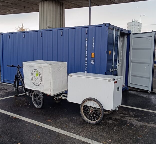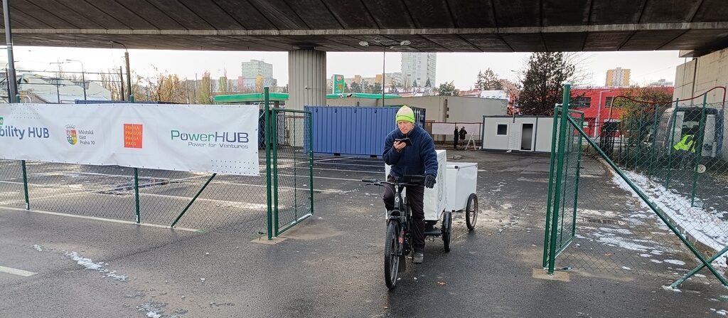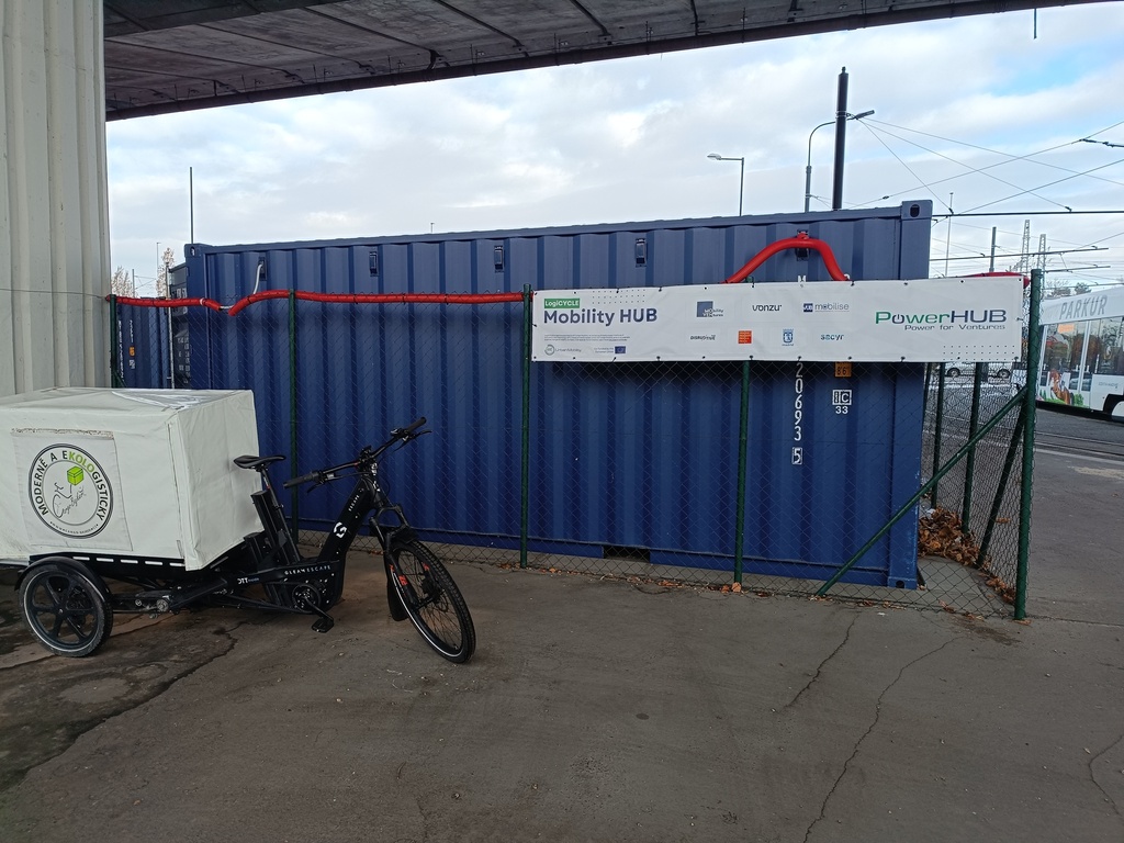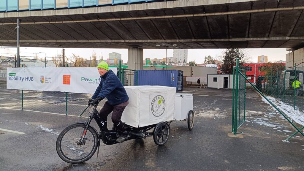 pražské mikrodepo pro překládku zásilek z dodávek na čistší a prostorově méně náročnější formy dopravy.