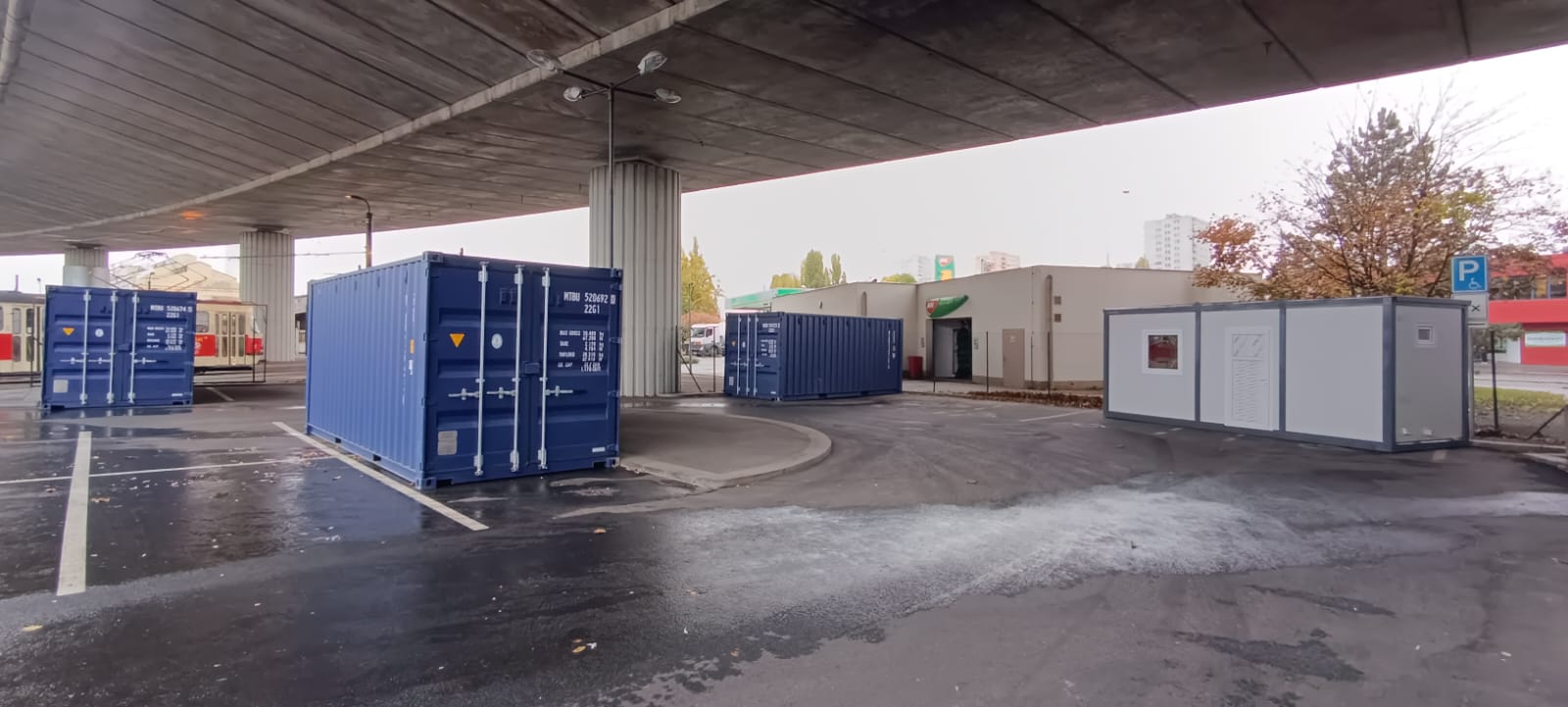 aktuálně k dispozici 3 kontejnery se zavedenou elektřinou s možností nabíjení kol uvnitř přes noc