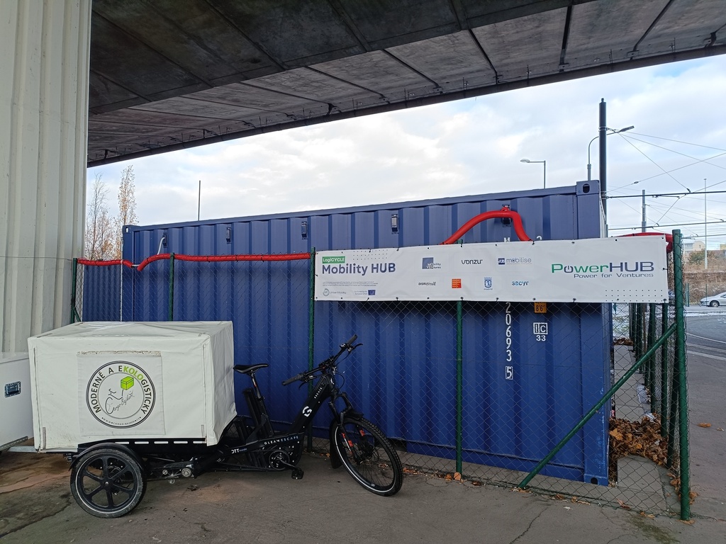 pražské mikrodepo pro překládku zásilek z dodávek na čistší a prostorově méně náročnější formy dopravy.